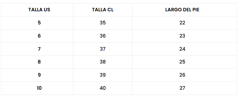 CONOCE TU TALLA EN SKECHERS WORK EN LA SIGUIENTE TABLA